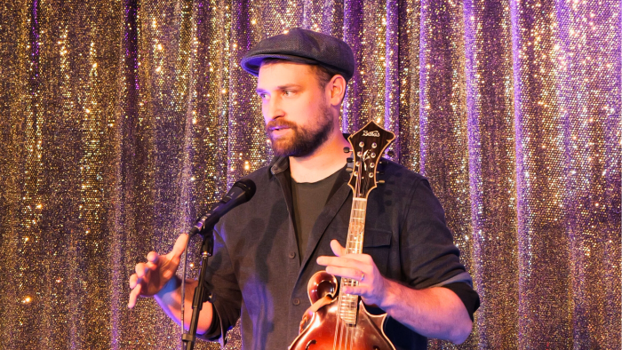 Podczas gdy na scenie trwa jeszcze rozmowa z Agnieszką Czyż, do swojej prezentacji przygotowuje się kolejny, piąty artysta wieczoru – Michał Bułas. Jego wystąpienie wyraźnie różni się od poprzednich i od razu mnie zaskakuje. Michał nie prezentuje muzyki, lecz opowiada o niej od zupełnie innej strony. Jego talent polega na budowaniu instrumentów. Od dzieciństwa interesuje się tworzeniem drewnianych przyrządów muzycznych i z czasem postanawia rozwinąć tę pasję na większą skalę. Po wejściu na scenę rozpoczyna opowieść o tym, skąd wziął się pomysł na taką działalność oraz jak funkcjonują instrumenty, które tworzy. Są to przede wszystkim drewniane mandoliny. Artysta przynosi ze sobą zarówno pojedyncze elementy, jak i gotowe instrumenty, które następnie przekazuje publiczności do obejrzenia. Trafiają one również w moje ręce. Od razu zwracam uwagę na liczbę detali i precyzję wykonania. Praca nad takim dziełem jest niezwykle czasochłonna i wymaga dużej dokładności. „Mały instrument a kryje w sobie wielki potencjał” – właśnie tak Michał określił mandoliny, które wykonuje najczęściej. Artysta sprawia wrażenie osoby spokojnej i skromnej, a jednocześnie całkowicie pochłoniętej tym, co robi. Słucha się go z dużą przyjemnością, co widać także po reakcjach publiczności, która z wyraźnym zaciekawieniem wsłuchuje się w jego opowieść.