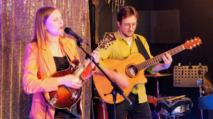 Po chwili zauważam, że do Michała dołącza jego żona – Karolina. Jest ona reprezentantką ostatniego zespołu, który tego wieczoru pojawia się na scenie. Mowa o Stacji Folk, grupie muzycznej wykorzystującej instrumenty wykonane przez Michała. Formacja występuje w duecie: mandolina i gitara, prezentując trzy utwory. W składzie zespołu nie ma perkusisty – jak zauważa Karolina, to mandolina przejmuje rolę instrumentu rytmicznego. Jako pierwszy wybrzmiewa autorska kompozycja „Jakby do ściany”. Następnie publiczność słyszy „W świetle gwiazdy” – utwór, do którego tekst napisała Milena, organizatorka WAPO i wokalistka zespołu Milomi. Trzecią, również autorską propozycją jest „W drogę ruszam i”. Wszystkie utwory utrzymane są w spójnym klimacie. Muzyka zespołu łączy blues i pop, choć wyraźnie słyszę w niej także elementy country i latino. Całość dopełniają subtelne, folklorowe akcenty, które nadają ich twórczości oryginalny charakter. Po wybrzmieniu ostatniego utworu publiczność reaguje entuzjastycznymi brawami, domagając się bisu. Zespół wykonuje jeszcze „Find a Way”, a Wieczór Artystów Poznańskich kończy się w atmosferze gorącego aplauzu.