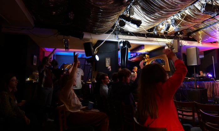 Wieczór dopełniły jeszcze dwa niezwykle interesujące występy. Jako pierwsza na scenie pojawiła się Laura Stieler – wokalistka jazzowa i dyrygentka, która zaprezentowała swoje autorskie kompozycje. Jej występ wyróżniał się nie tylko muzyczną wrażliwością, ale także swobodą sceniczną. Artystka zaprosiła publiczność do krótkiej improwizacji, tworząc spontaniczny i bardzo angażujący moment, który spotkał się z dużym entuzjazmem słuchaczy.
